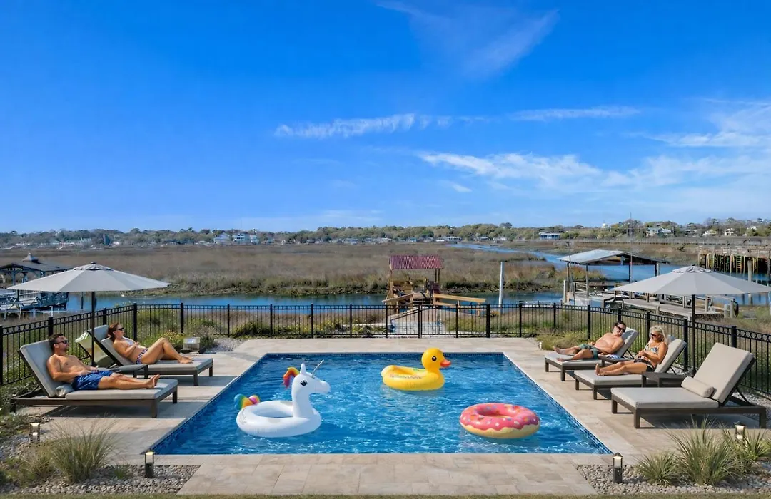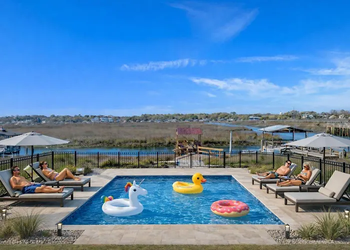 Situated merely 250 metres from the Pier at Garden City Beach, the Myrtle Beach villa is also 3.8 km from entertainment places like the Crazy Sister Marina. Heron Point Golf Club is nestled approximately a 15-minute drive from the property, and the energy Wild Water and Wheels is about a 20-minute drive away. Positioned within a 4-km distance of the Belin Methodist Church, Pet Friendly! Private Pool And Oversized Deck! Inlet Home For 16! Mystic C is popular among both worshippers and tourists.